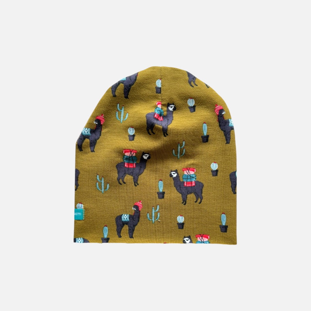Czapka dresowa dla niemowląt - alpaki lamy - oliwkowa OSTATNIE SZTUKI