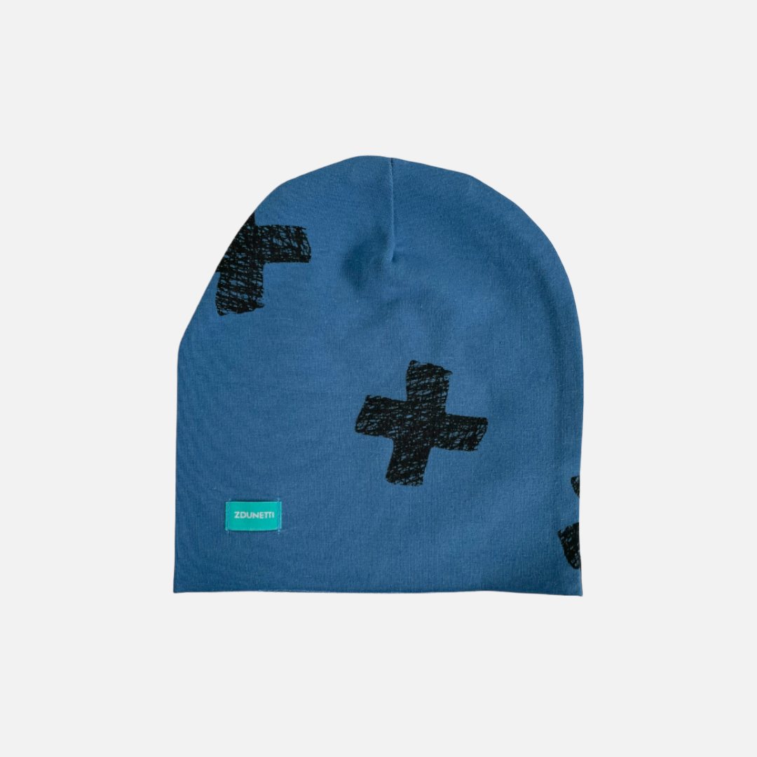 Czapka dresowa dla niemowląt - krzyżyki plusy - niebieska OSTATNIA SZTUKA