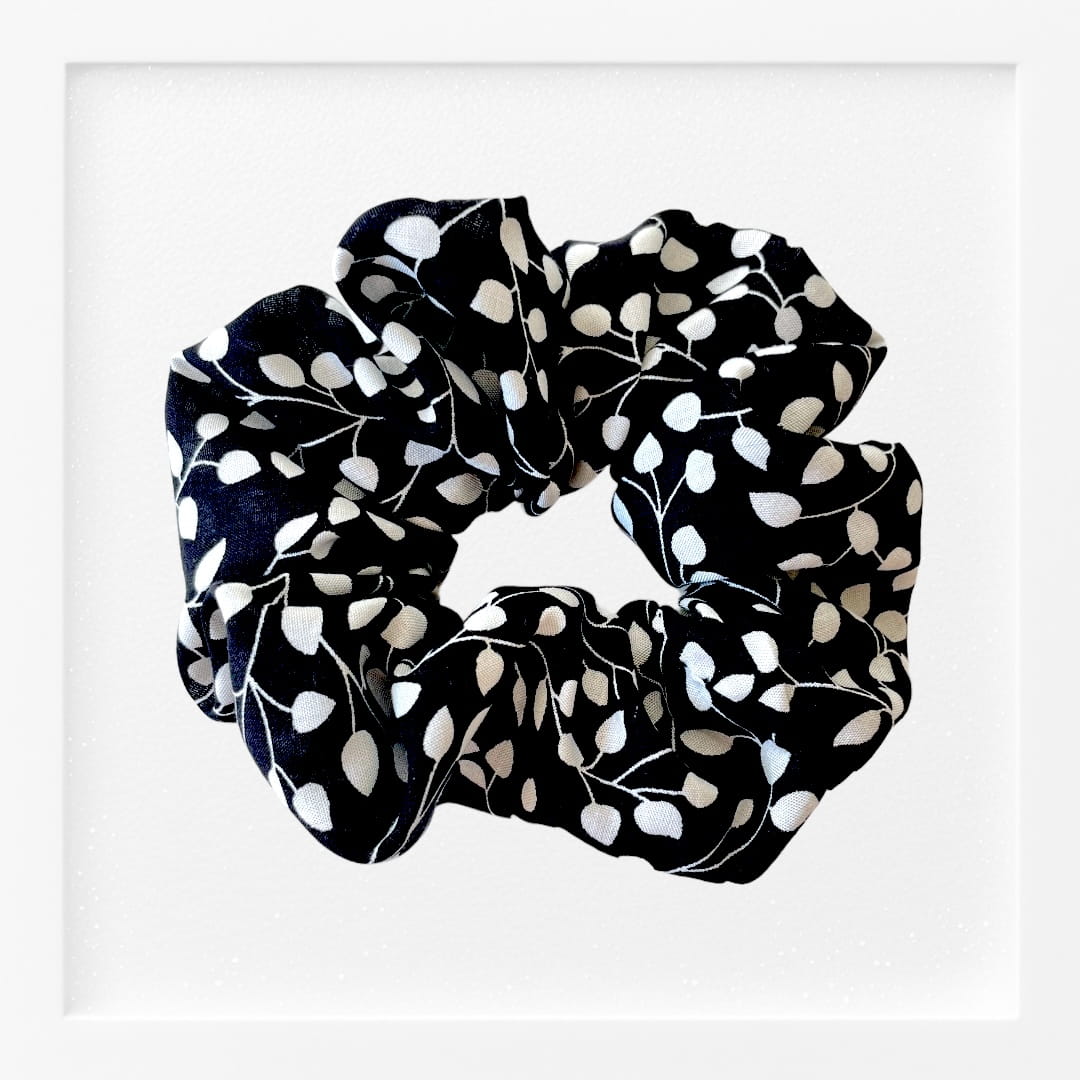 Frotka gumka - gałązki białe - czarna