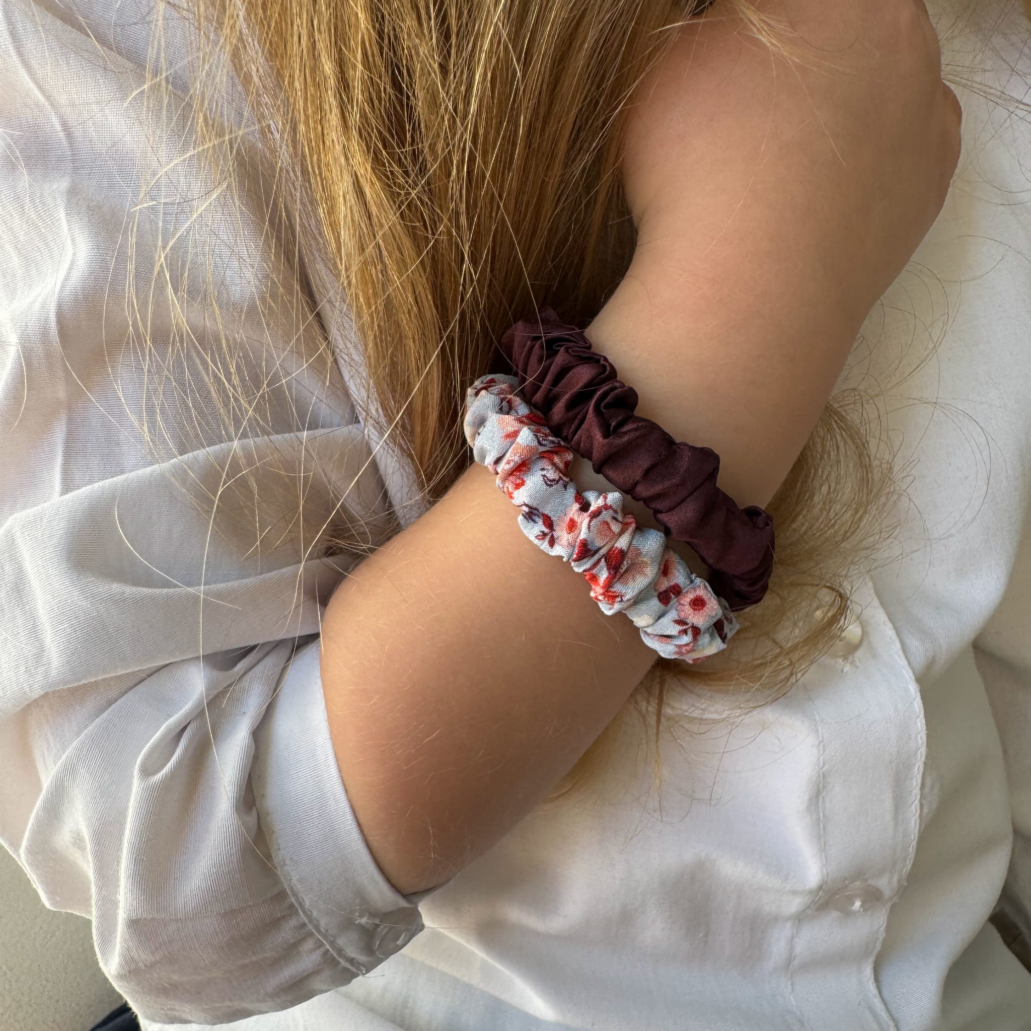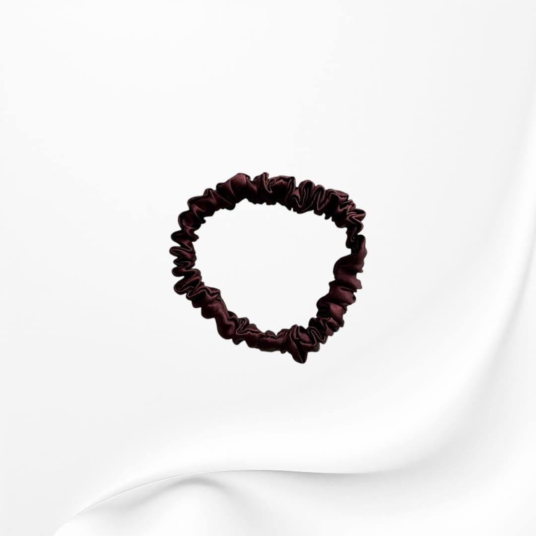 Jedwabna gumka scrunchie micro - brązowa bakłażanowa