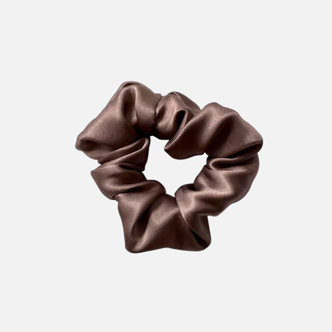 Jedwabna gumka scrunchie midi - beżowy brąz