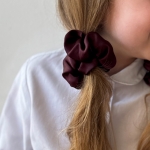 Jedwabna gumka scrunchie midi - brązowa bakłażanowa