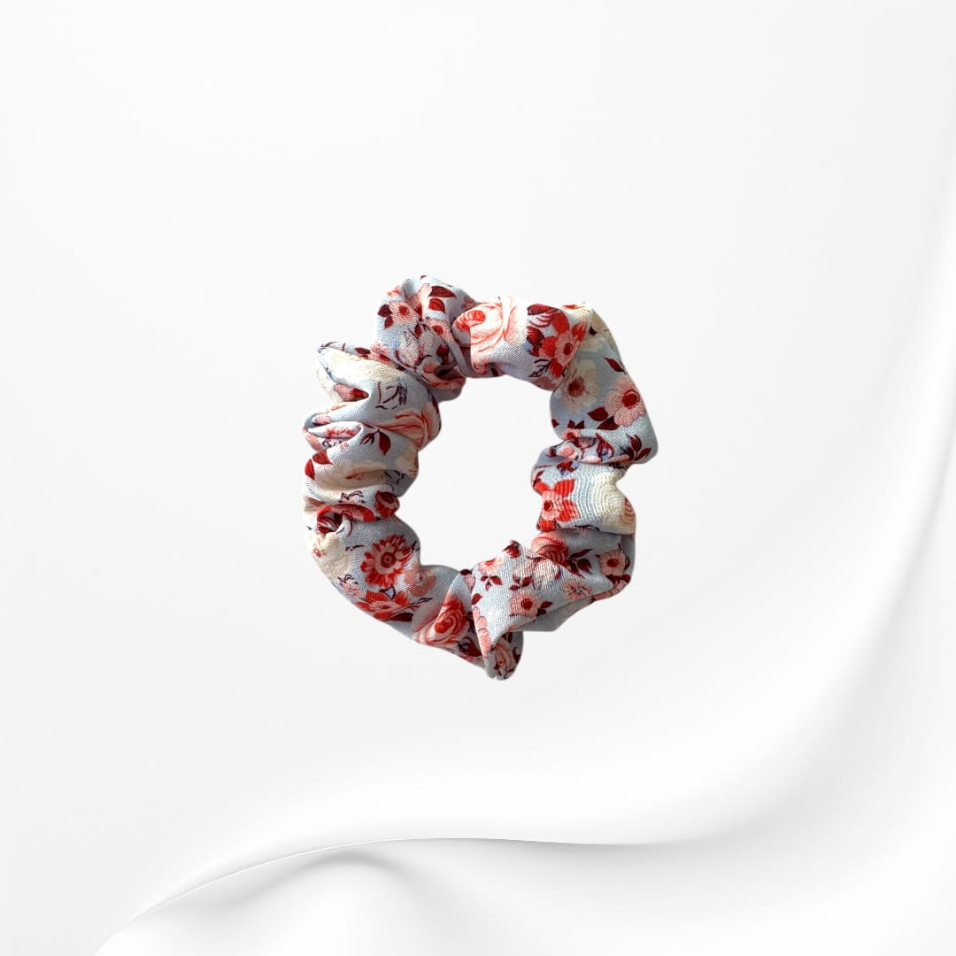 Jedwabna gumka scrunchie mini - kwiatki