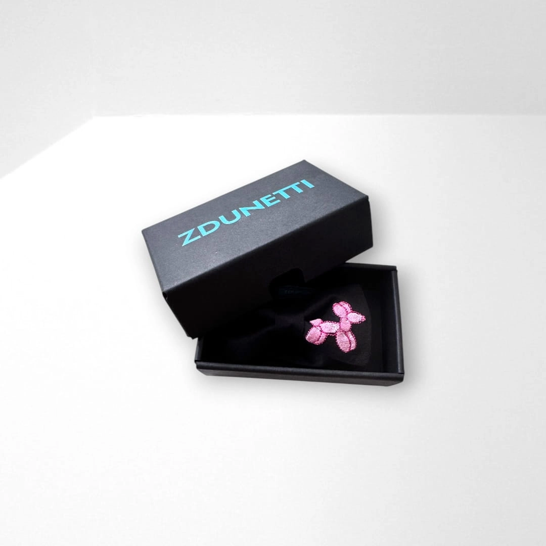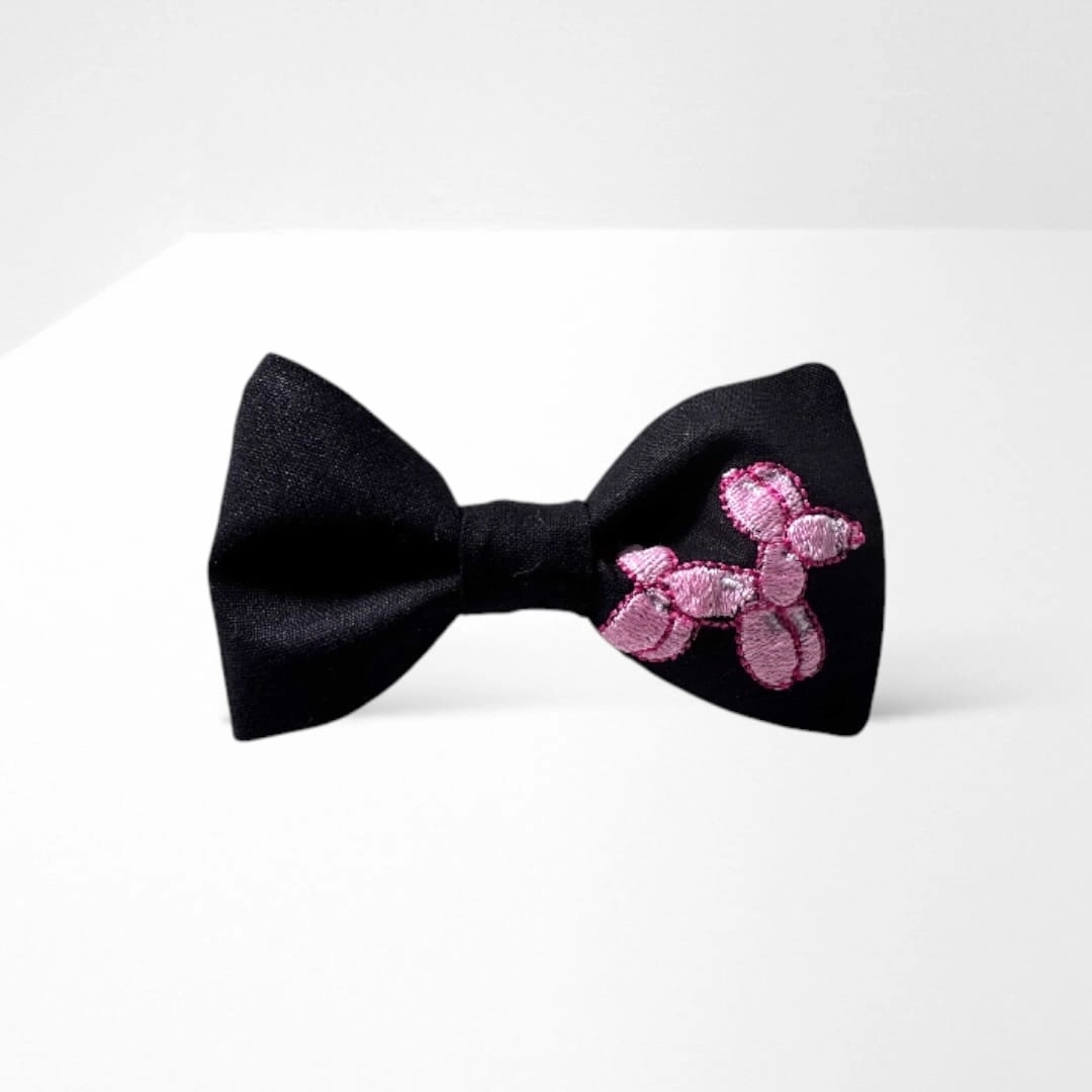 Wzór: muszka w kolorze czarnym (haft: różowy balonik piesek)
