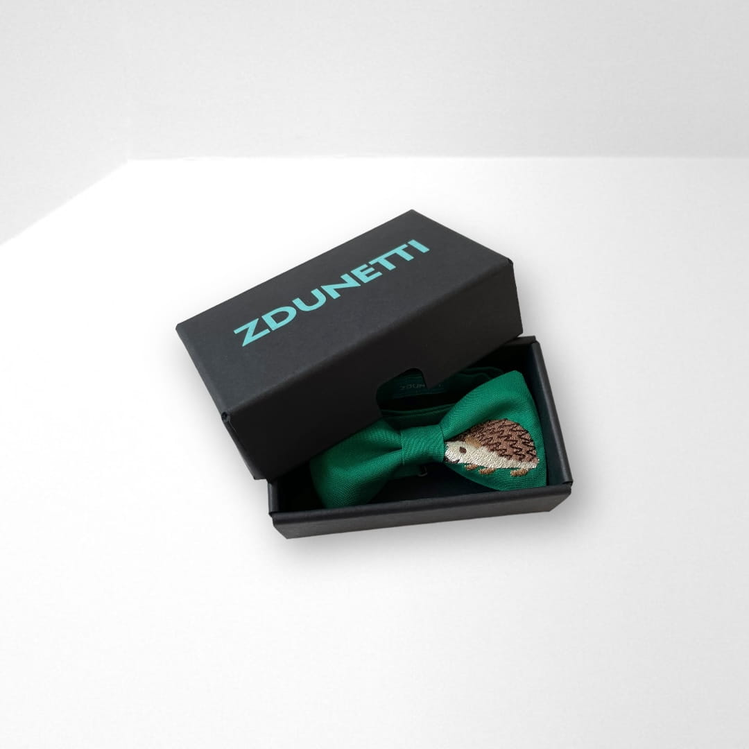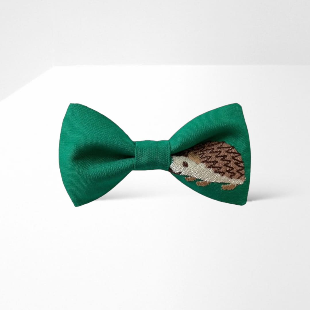 Wzór: muszka w kolorze zielonym (haft: jeż)