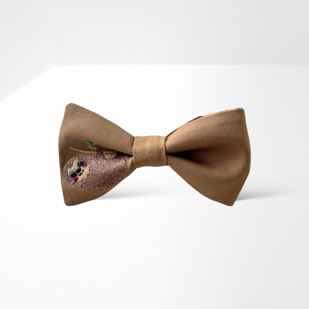 Wzór: muszka w kolorze jasnym brązowym (haft: leniwiec)