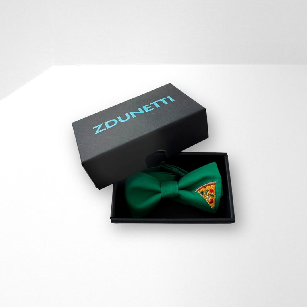 Wzór: muszka w kolorze zielonym (haft: pizza)