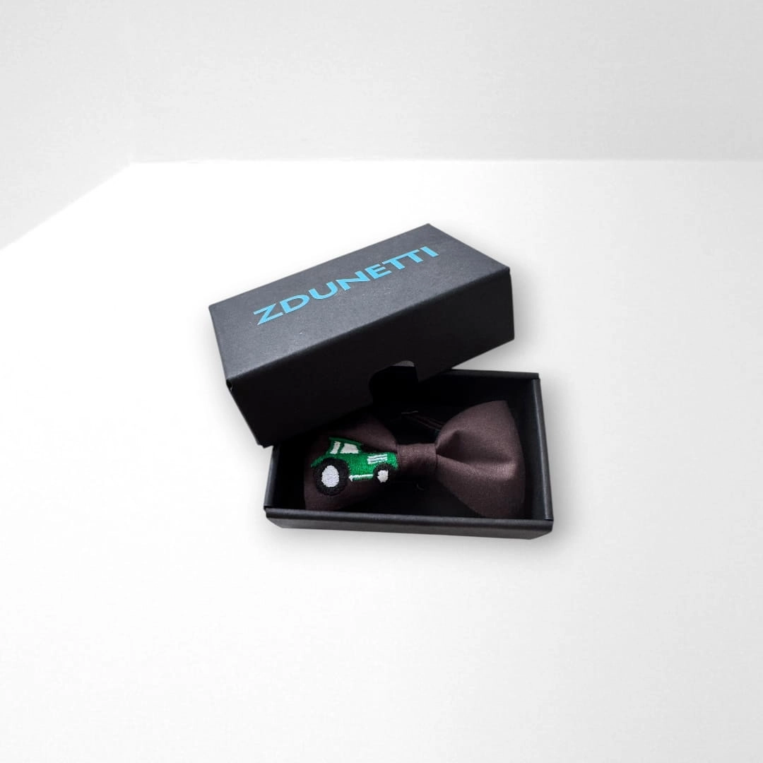 Wzór: muszka w kolorze brązowym (haft: traktor)