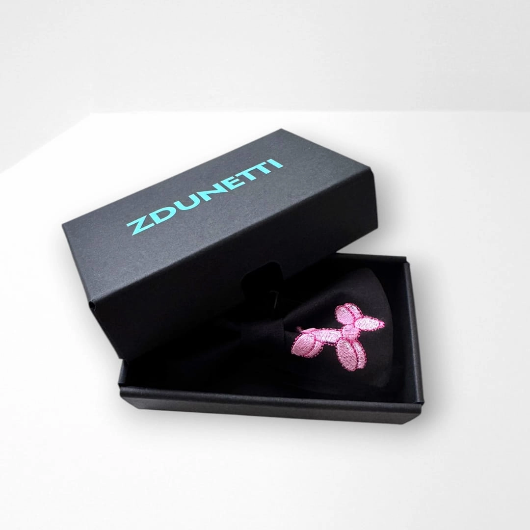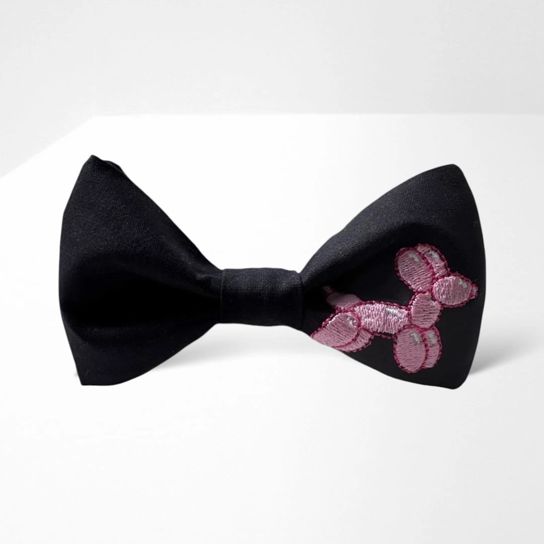 Wzór: muszka w kolorze czarnym (haft: różowy balonik piesek)