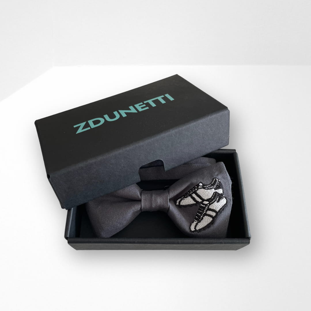 Wzór: muszka w kolorze grafitowym (haft: korki piłkarskie)