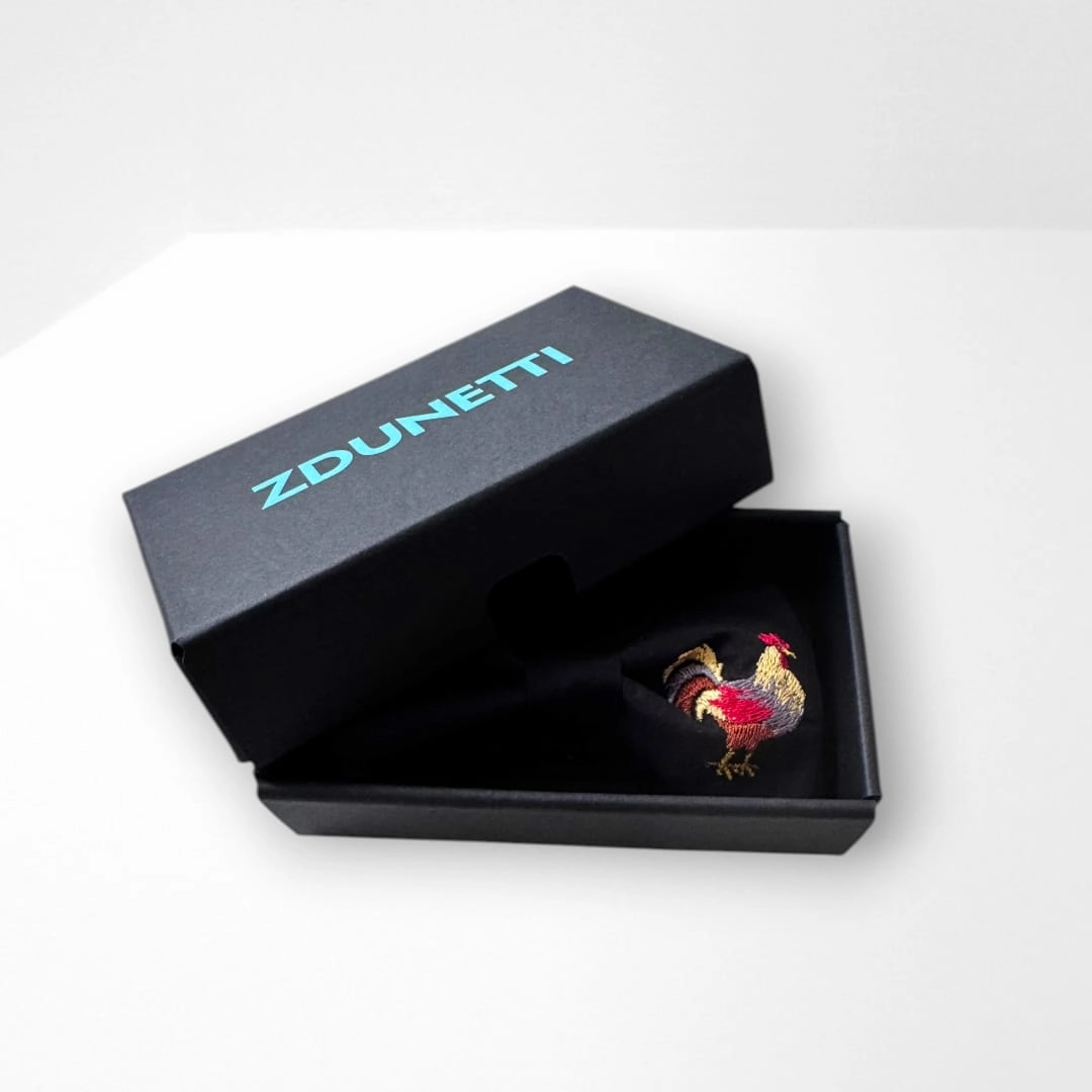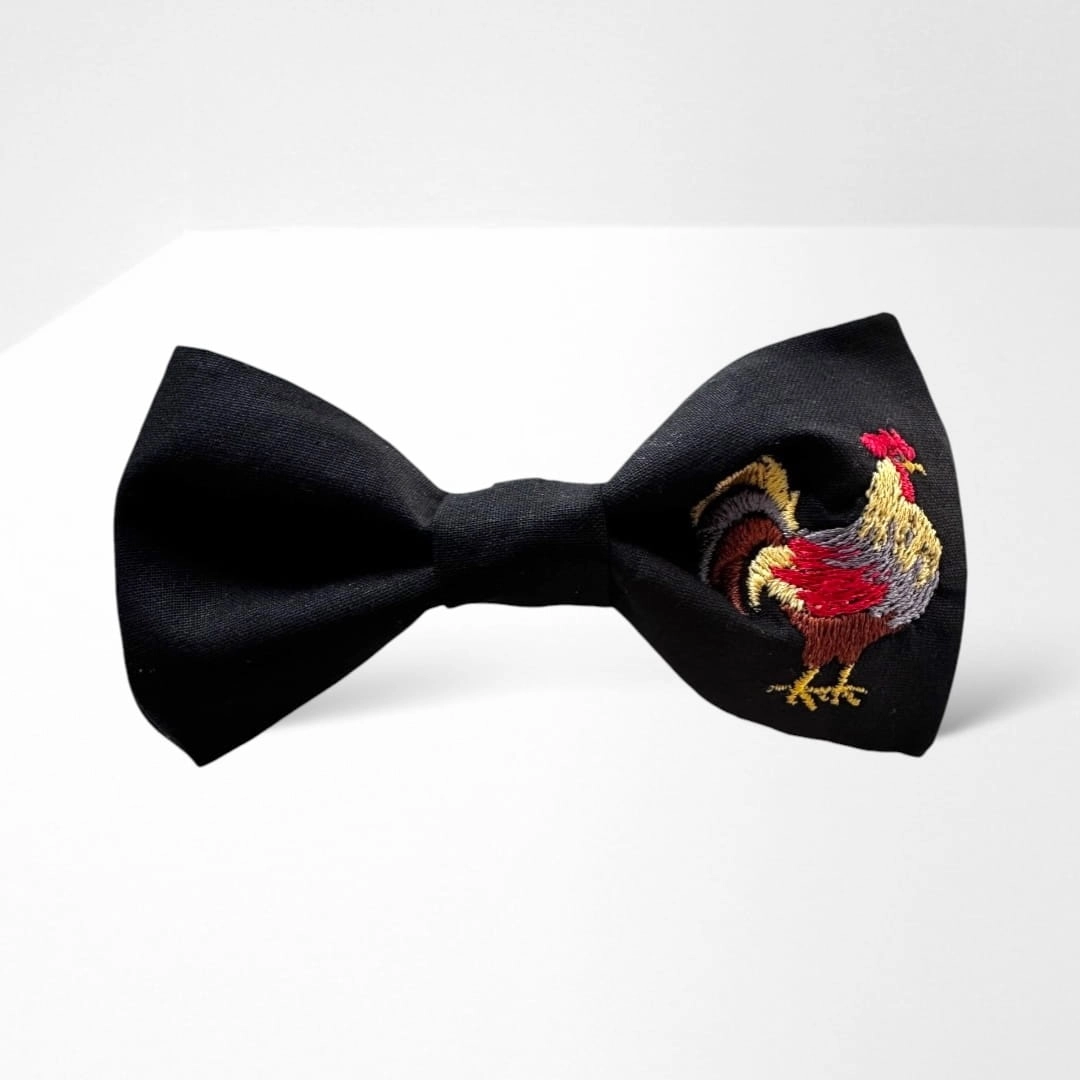 Wzór: muszka w kolorze czarnym (haft: kogut)