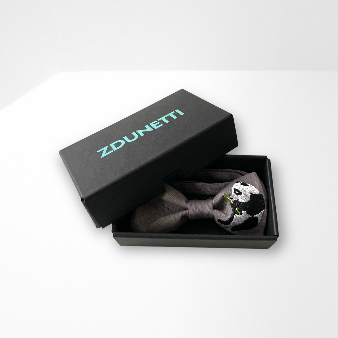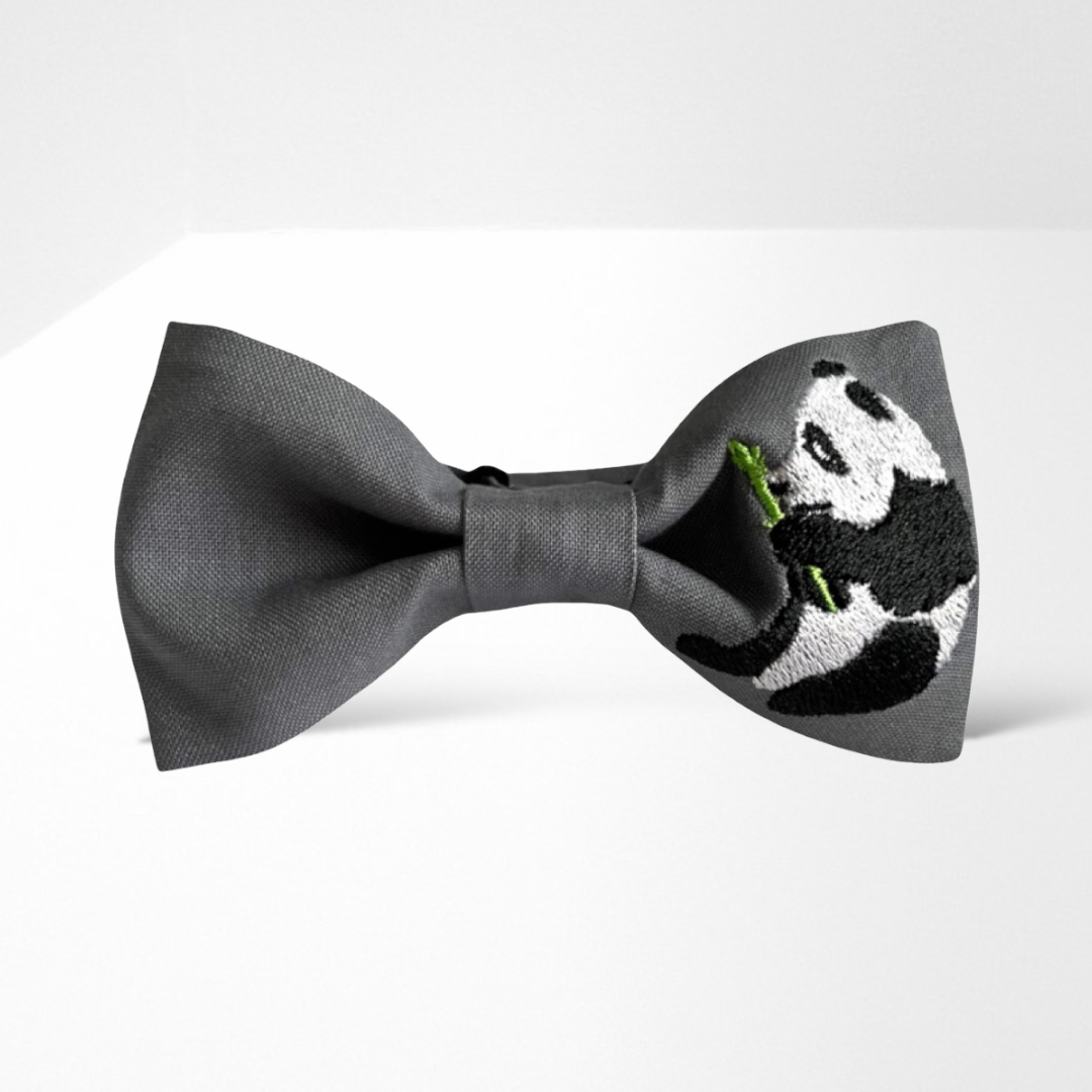 Wzór: ciemno-szara muszka (haft miś panda)