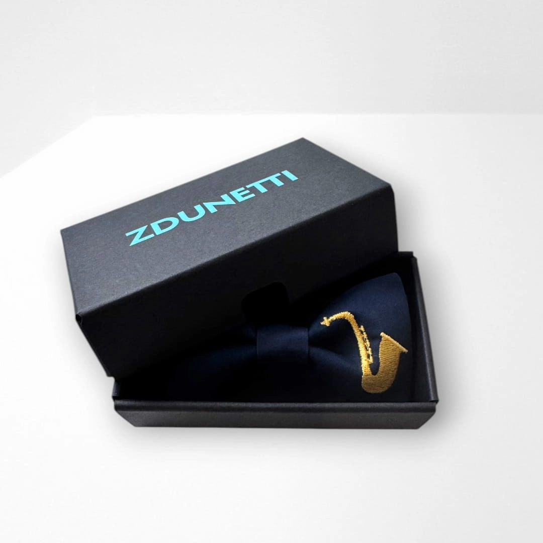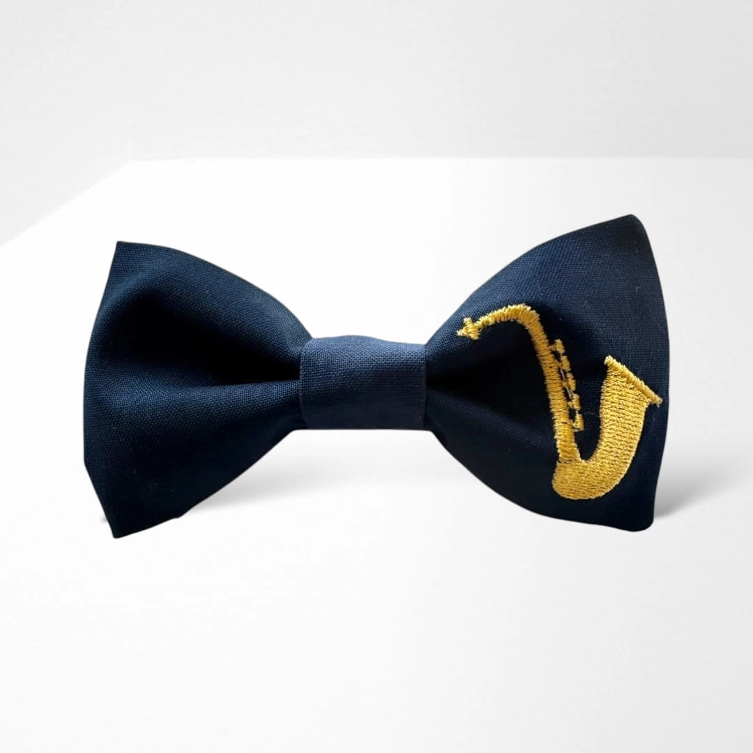 Wzór: muszka w kolorze granatowym (haft: saksofon)