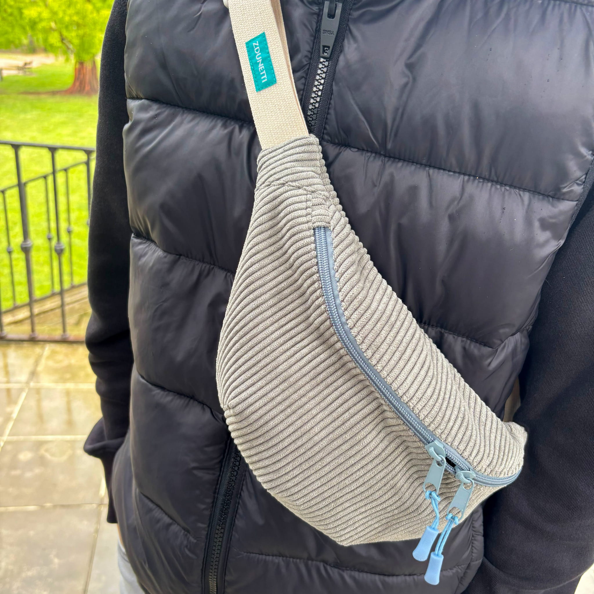 Długi regulowany bawełniany pasek sprawia, że nerka z kieszonką pasuje na dziecko i osobę dorosłą.