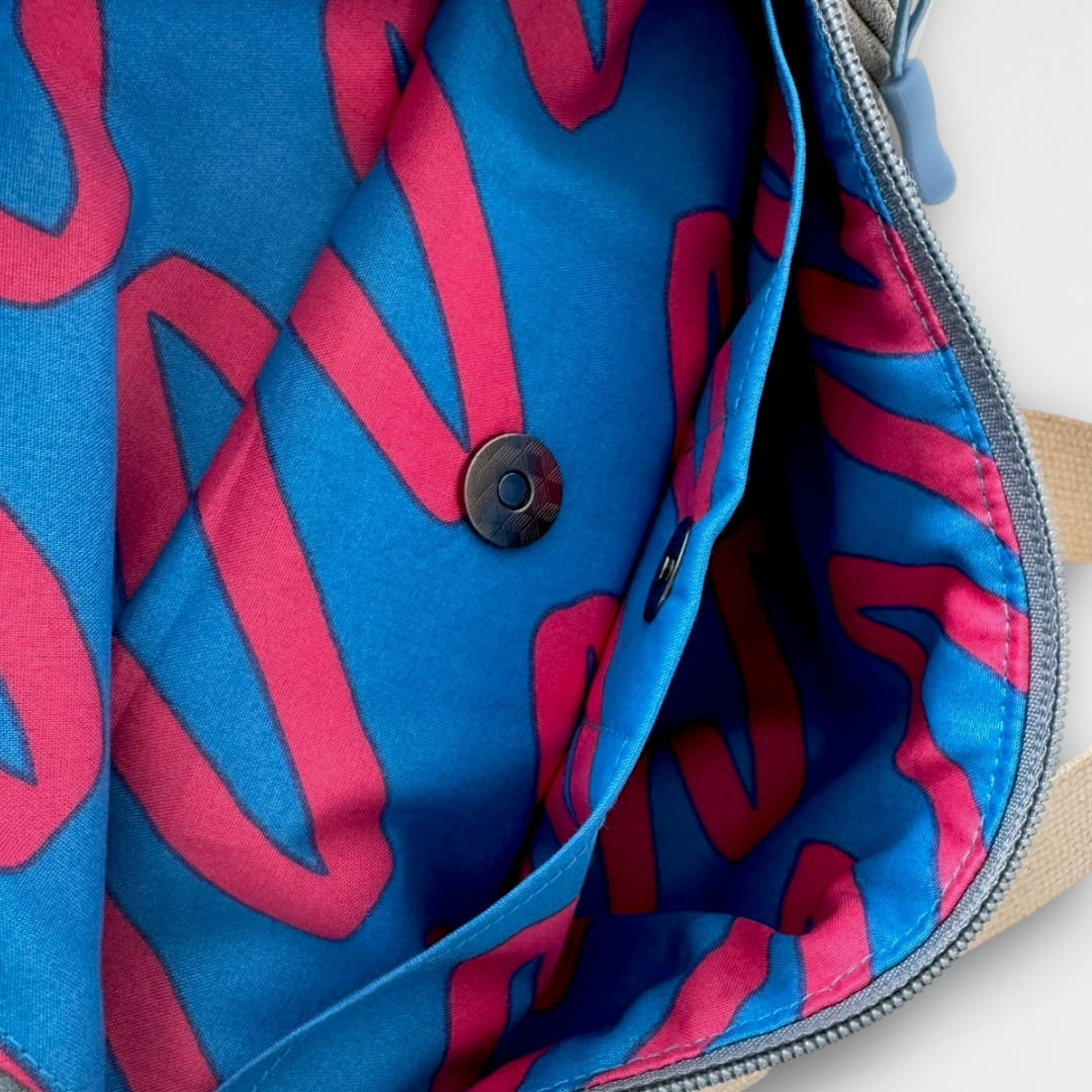 - Zapięcie klapka - suwak, kieszonka - magnes, bawełniany pasek - plastikowa klamra