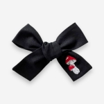 Spinka do włosów kokardka haftowana - muchomory - czarna