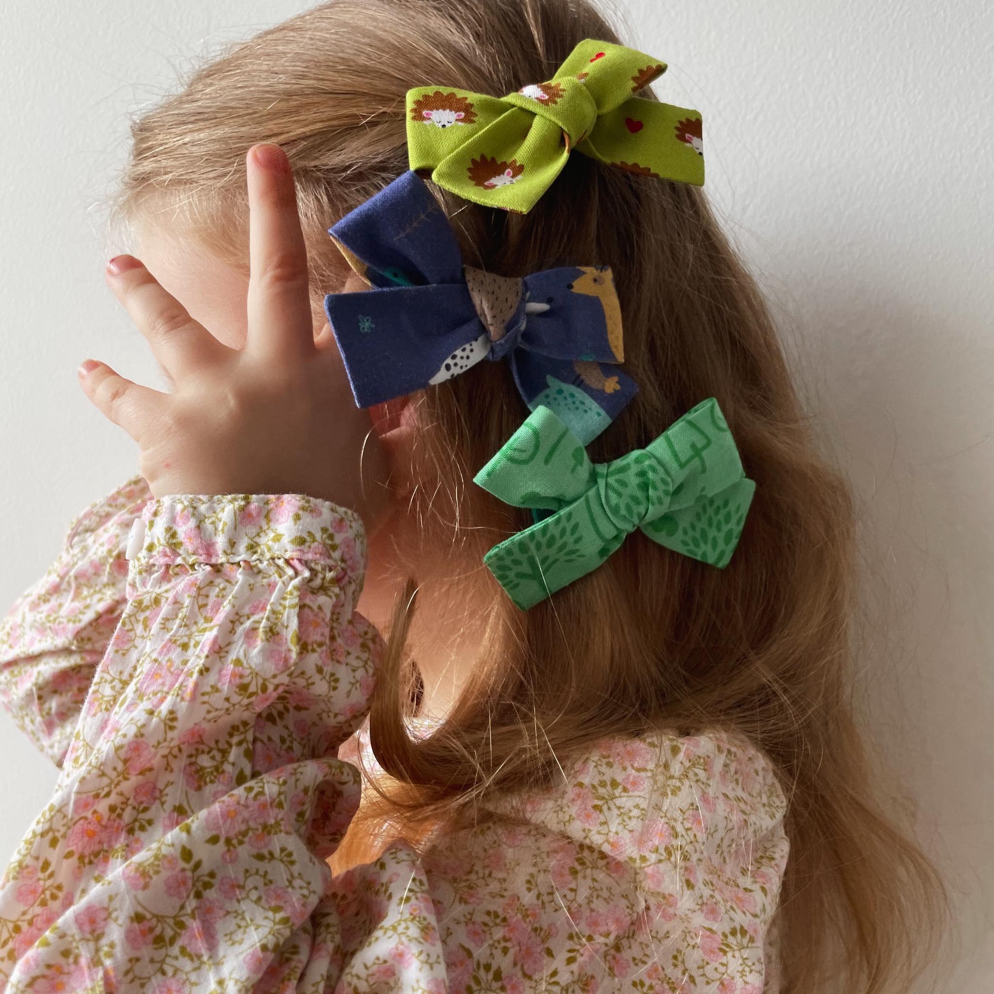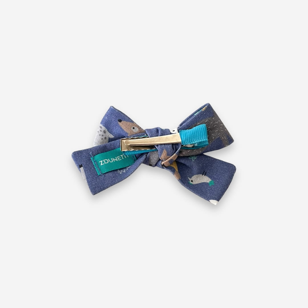 Spinka do włosów kokardka mini - zwierzątka - niebieska