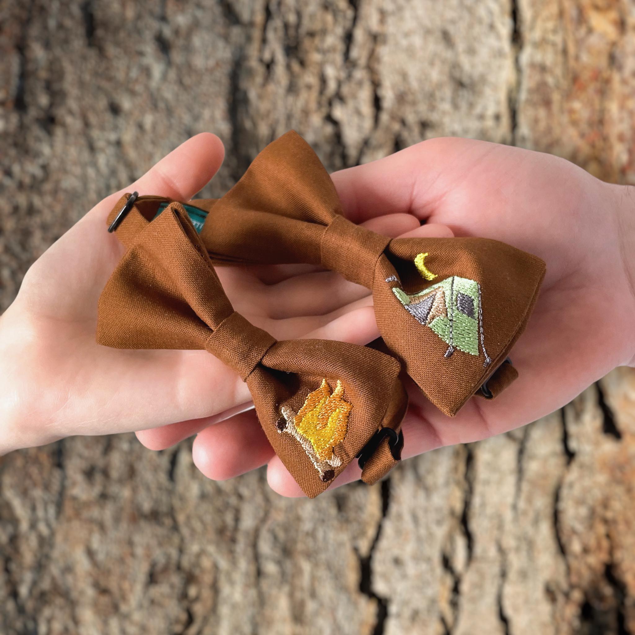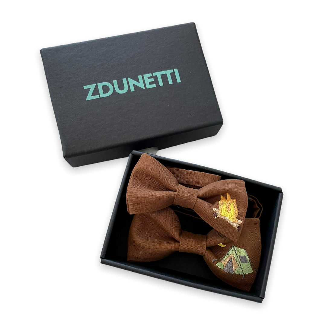 Komplet muszek haftowanych dla taty i syna - Biwakowanie