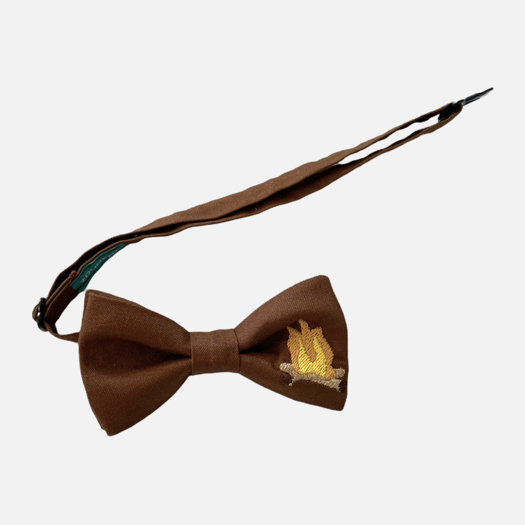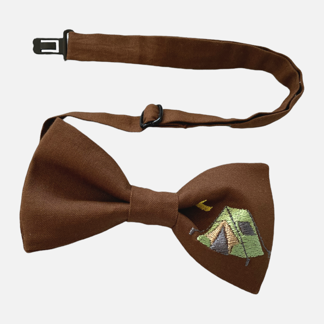 Wzór: Brązowa muszka z haftem dla miłośników biwaków.