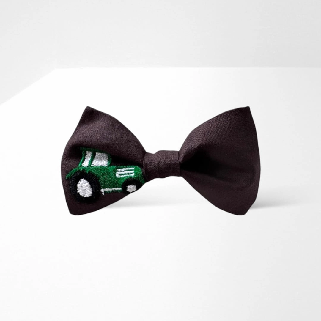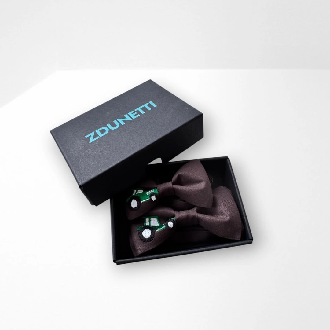 Wzór: Brązowa muszka z haftem dla miłośników rolnictwa.